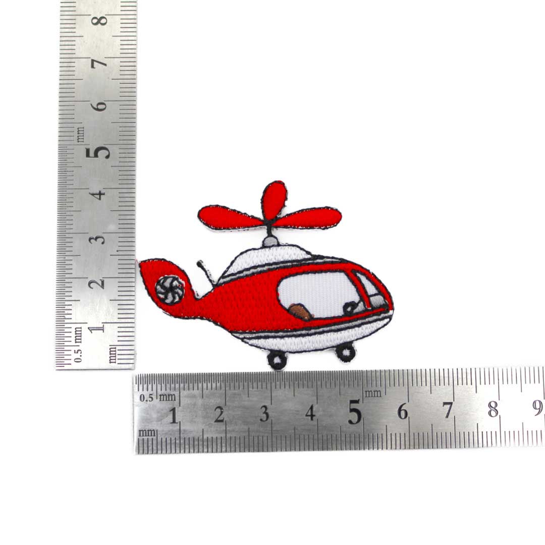 ワッペン アイロン ミニサイズ ヘリコプター 乗り物 航空機 かわいい レッド アップリケ わっぺん 小さい アイロンで簡単貼り付け 1000円以上お買い上げでゆうパケット便送料無料