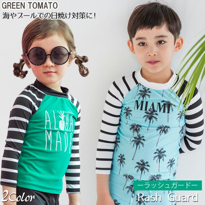 在庫限り 超目玉!韓国子供服GREEN TOMATO 手書き風イラスト 7分袖 ラッシュガード子供 プール 海水浴 水泳 水遊び 紫外線防止 日焼け対策 ガールズ 女の子 140cm 150cm
