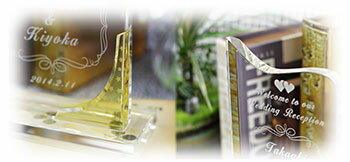 ご希望の文字や絵柄、ロゴマークなどをお客様のご希望に合わせて当社デザイナーが原稿を作成し、ガラス表面にサンドブラスト彫刻で名入れ致します。
