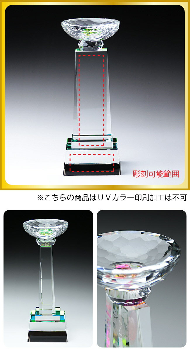 サンド彫刻は写真の加工は不可】 材 質エコロジークリスタルガラス サイズ 【大A】幅9cm×高23cm×奥9cm 【中B】幅9cm×高21cm×奥9cm 【小C】幅9cm×高18cm×奥9cm 包装化粧箱入り 用 途優勝トロフィー、優秀賞、ゴルフコンペ、社内表彰、周年記念、認定証、検定合格証 備考オリジナル彫刻で世界でひとつだけのオリジナルトロフィーや盾が製作できます! ※価格に含まれるもの (商品代金・校正代金・彫刻代金) (ロゴマークなどデーターを作成する必要がある場合には 別途費用がかかる場合がございます。