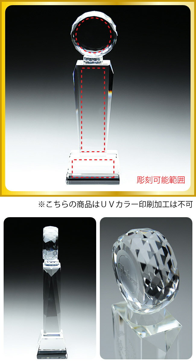 ダイヤカット部分にロゴマークや優勝などの文字、柱部分などに表彰名などを分けて彫刻可能です。